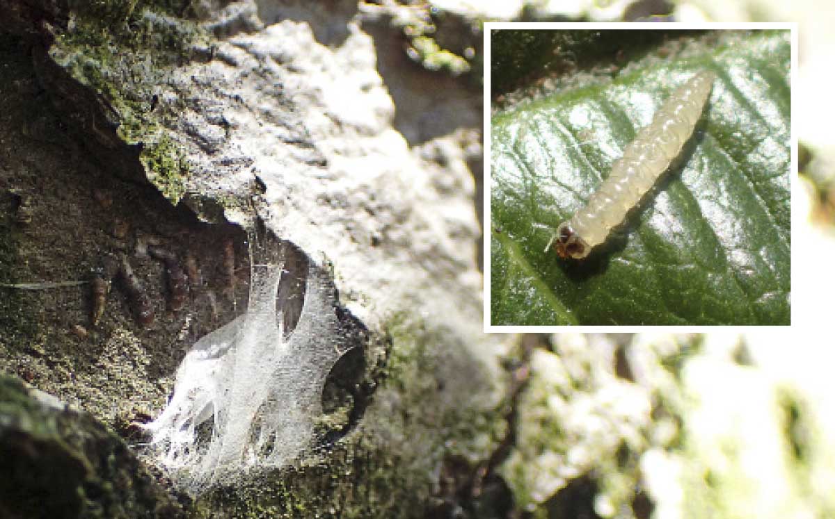 Podkopníček spirálový se také šíří kvůli úbytku razantních přípravků - zápředek v borce stromu a migrující housenka