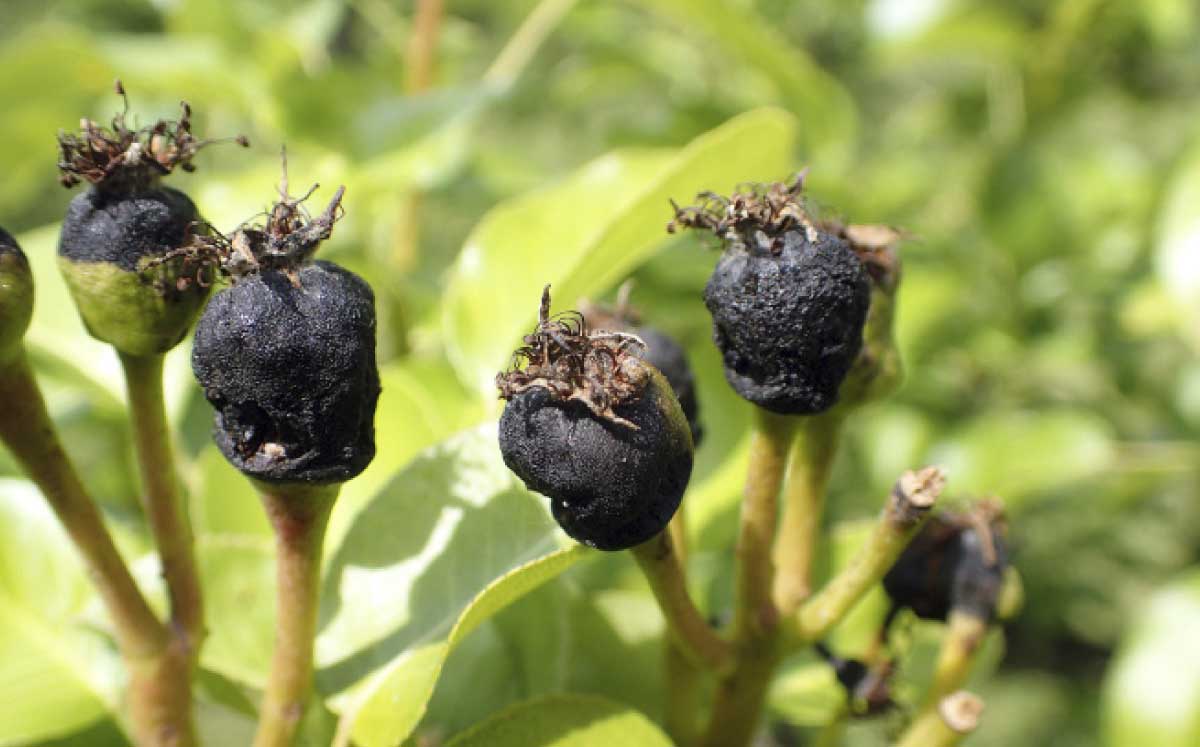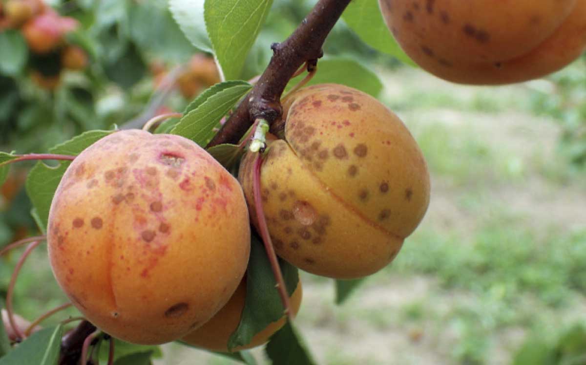 Vlivem minimálních srážek a nízké vzdušné vlhkosti jsme mohli zaznamenat nižší výskyty moniliové spály (Monilinia sp.), suché skvrnitosti listů třešně (Stigmina carpophila) i skvrnitosti listů třešně a višně (Blumeriella jaapii). U citlivých odrůd hrušní byly naopak lokálně zaznamenávány infekce bakteriální spály jabloně (Erwinia amylovora). Na dozrávajících jádrovinách se v létě i před sklizní vyskytovala poškození moniliovou hnilobou (Monilinia sp.), hlavně však v souvislosti s aktivitou hmyzu nebo po krupobití.