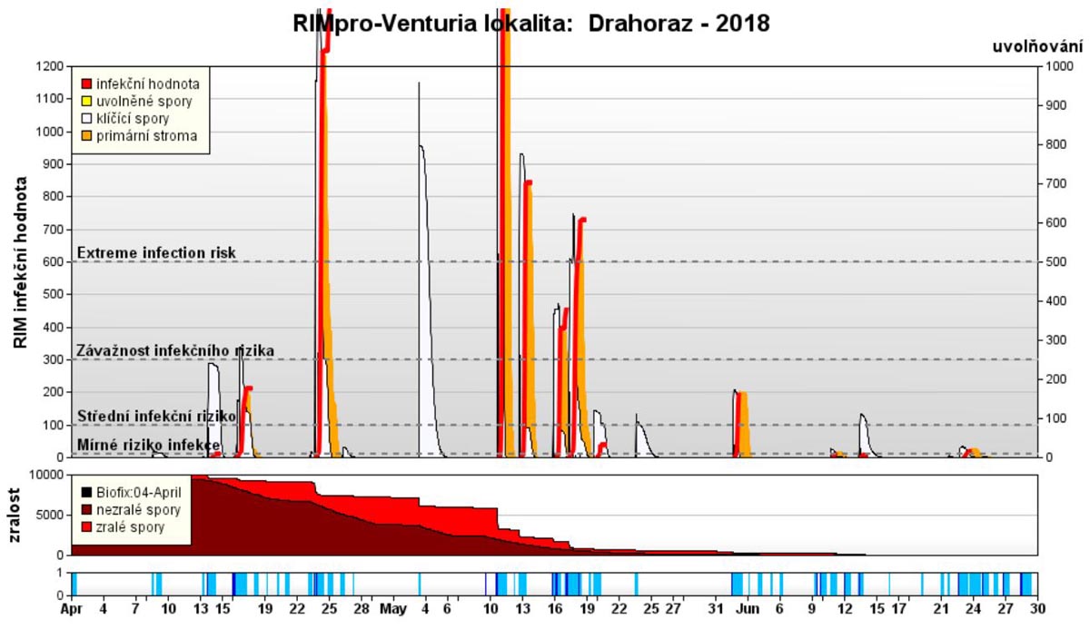Graf: Průběh modelu RIMpro pro pilatku jablečnou