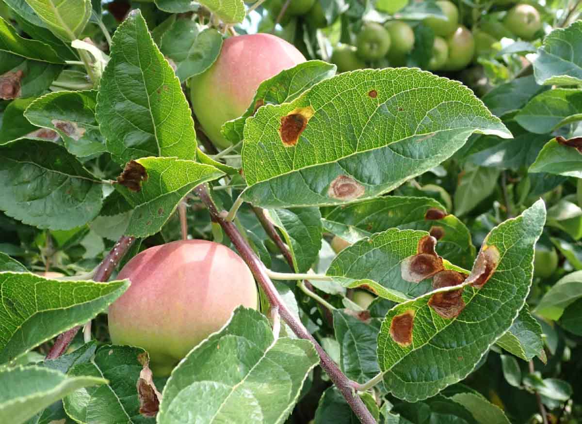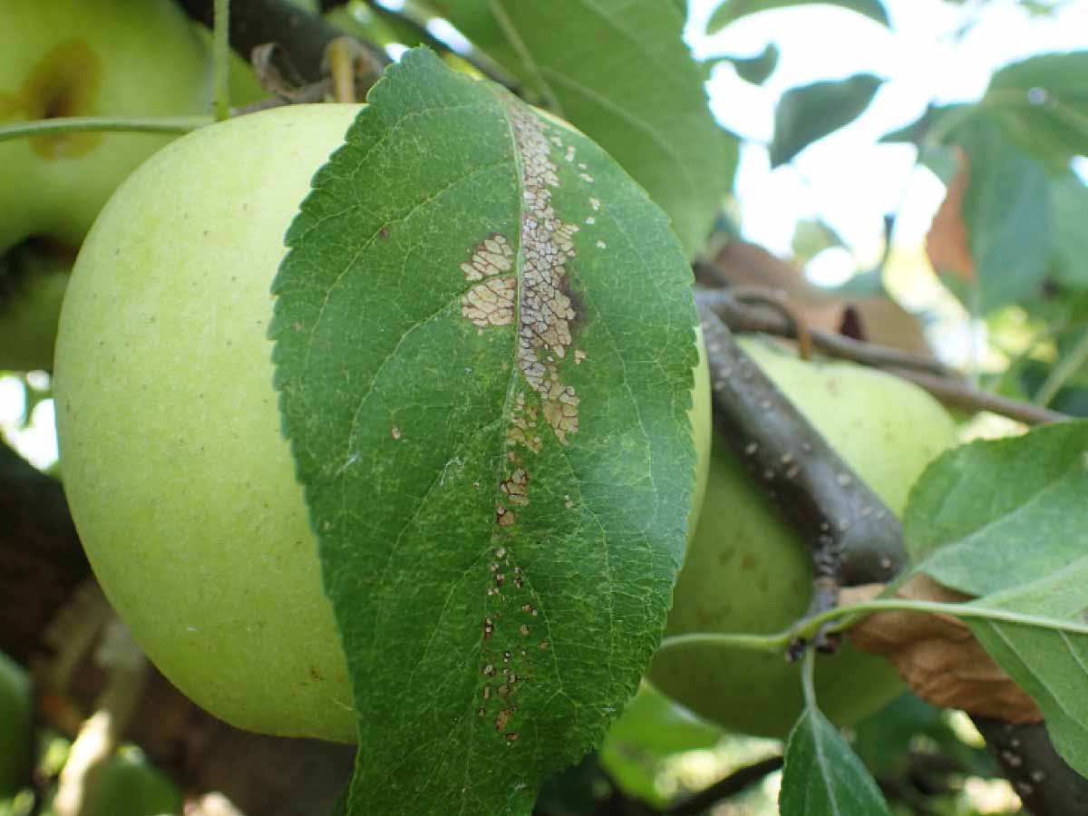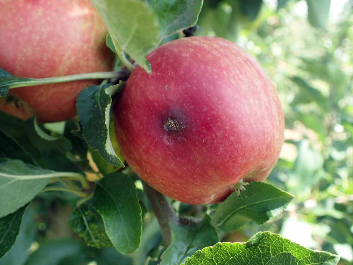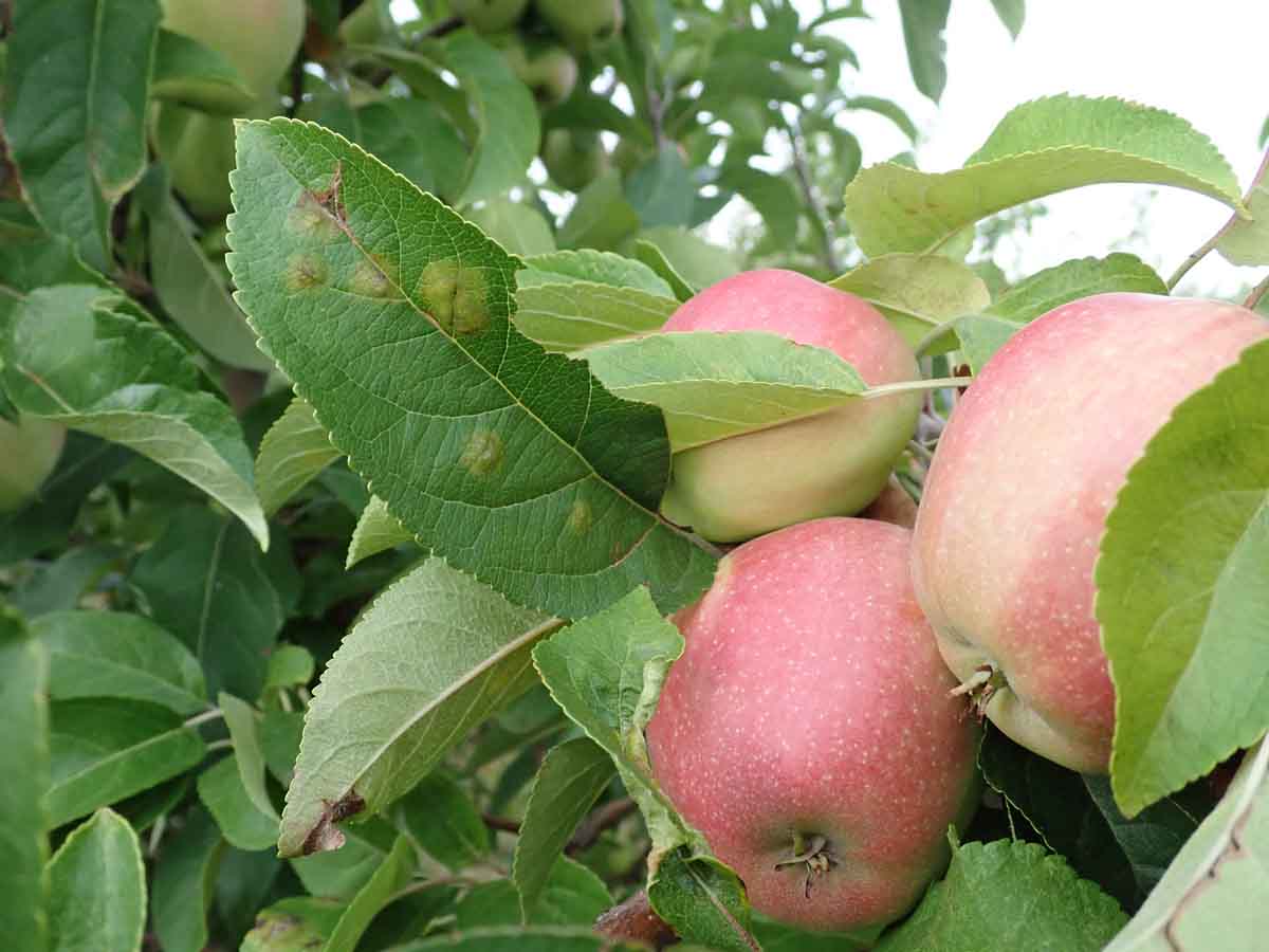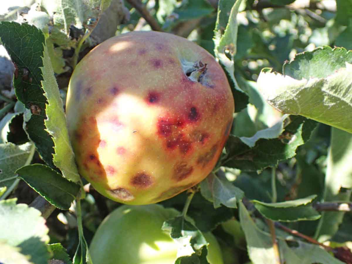 Strupovitost jabloně na listech může těsně před sklizní ještě přejít na plody