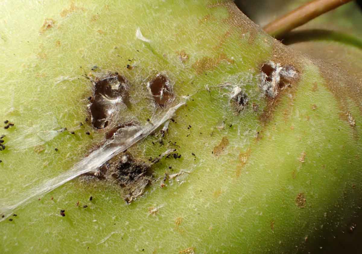 Ve výsadbách jabloní se letos můžeme setkat s extrémními příznaky poškození strupovitostí, jejíž výskyt se mnohdy v plné míře projevil až po dlouhodobých červnových srážkách. V sadech se symptomy konidiových sekundárních infekcí proto musíme počítat s rizikem rozvoje tzv. pozdní strupovitosti, hlavně na odrůdě Golden Delicious. Tato forma strupovitosti se zprvu projevuje vznikem drobných načervenalých lézí (v okolí lenticel) přecházejících ve skladu do podoby typických strupatých skvrn - oproti „běžným“ infekcím jsou tyto léze na povrchu plodů pravidelně rozmístěny. Skládková strupovitost se může rozvinout i latentně bez viditelných symptomů u sklízeného ovoce, kdy v průběhu skladování dojde k vyklíčení konidií přítomných na plodech. Ochranu řešíme společně se zásahy proti dalším skládkovým patogenům - kvůli ochranným lhůtám co nejdříve. V produkci určené na dětskou výživu jsou možnosti výběru přípravků omezené na přípravky Myco-Sin a VitiSan.