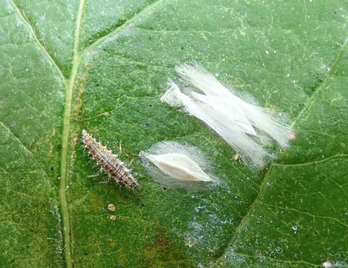 Vlnatka láká i další predátory na snímku vajíčka slunéček a vajíčko zlatoočky