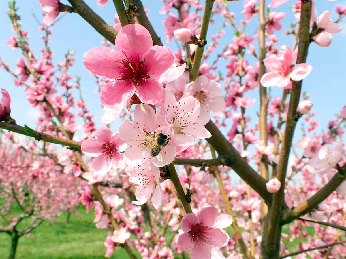 Během měsíce dubna pravidelně rozkvétají peckoviny - jako první zpravidla meruňky a poté broskvoně; s květem jsou také aktivní opylovači
