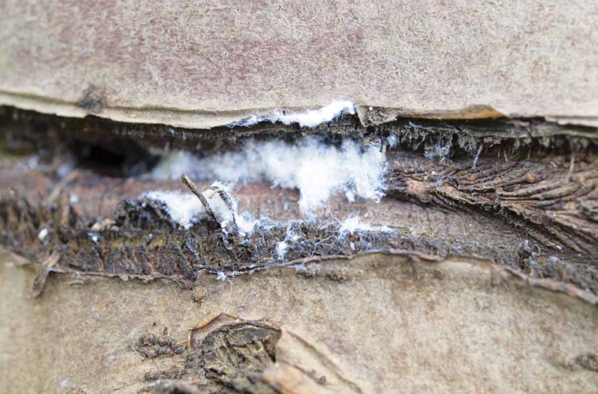S oteplením se začínají obnovovat kolonie vlnatky krvavé přezimující na stromech