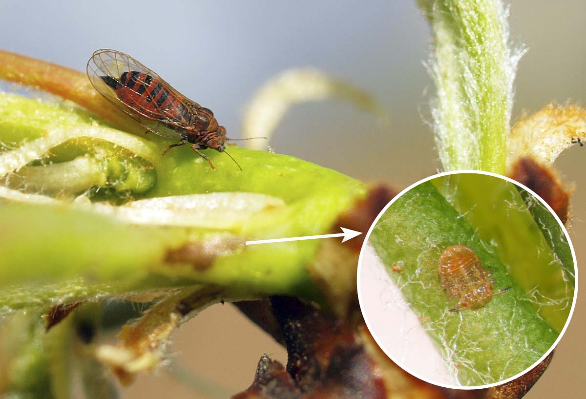 Před květem hrušní probíhá vrchol kladení mery skvrnité a mohou se objevovat i první nymfy