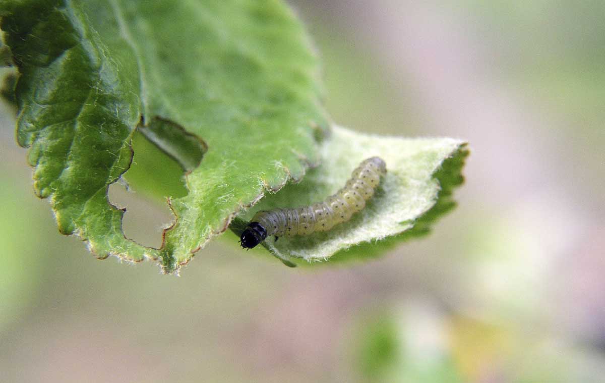 S růstem zelených pletiv v sadech nalézáme široké spektrum listožravých housenek včetně slupkových obalečů