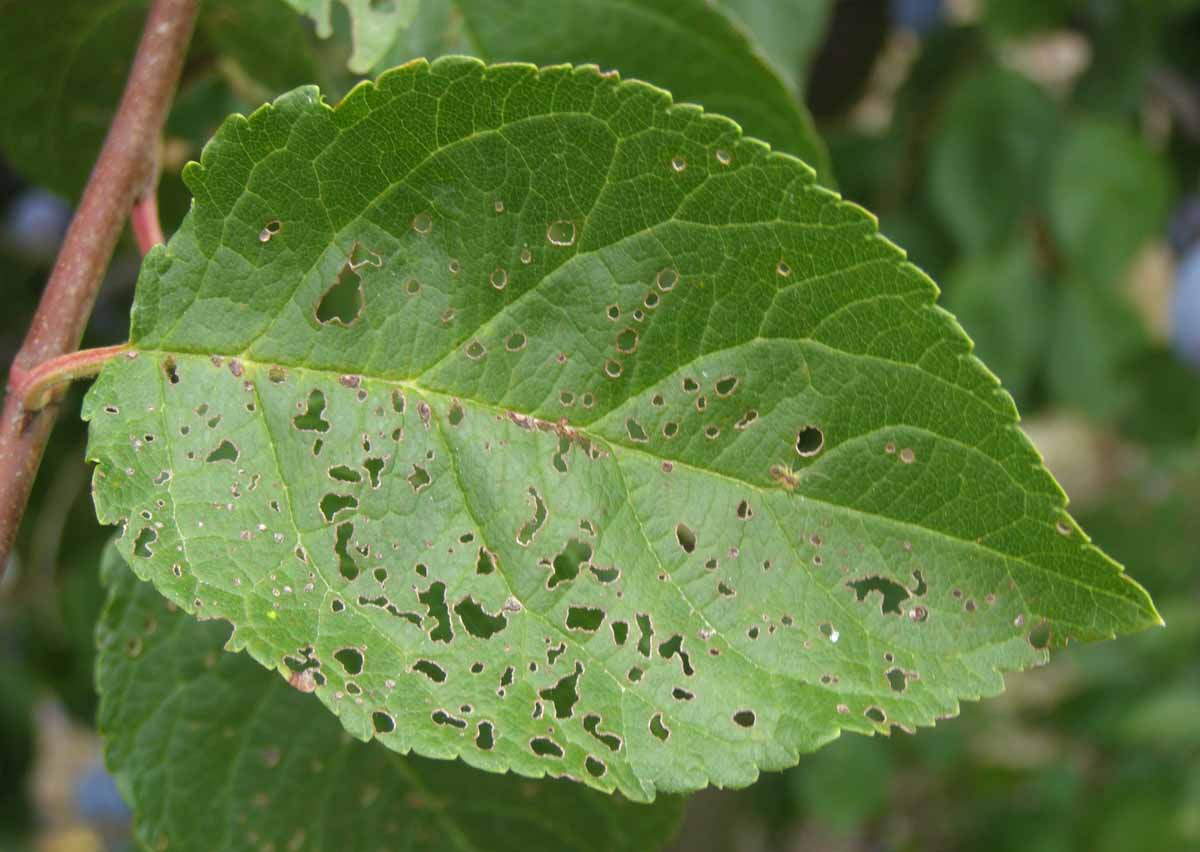 Symptomy suché skvrnitosti listů peckovin