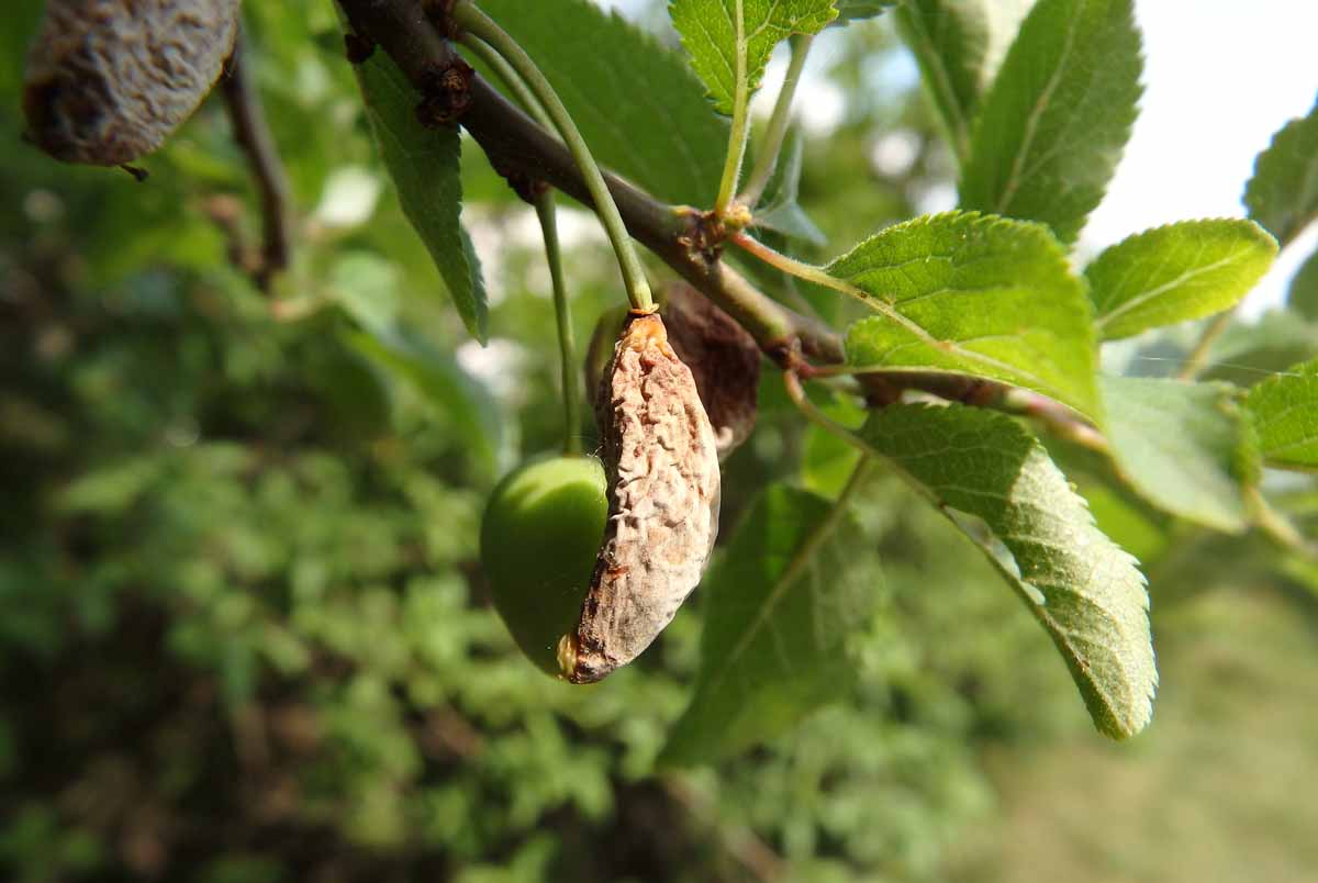 Symptomaticky se plně projevují choroby, jež bylo třeba řešit v jarním období: kadeřavost broskvoně (Taphrina deformans), puchrovitost švestky (Taphrina pruni) a moniliová spála (Monilinia laxa. M. fructigena).