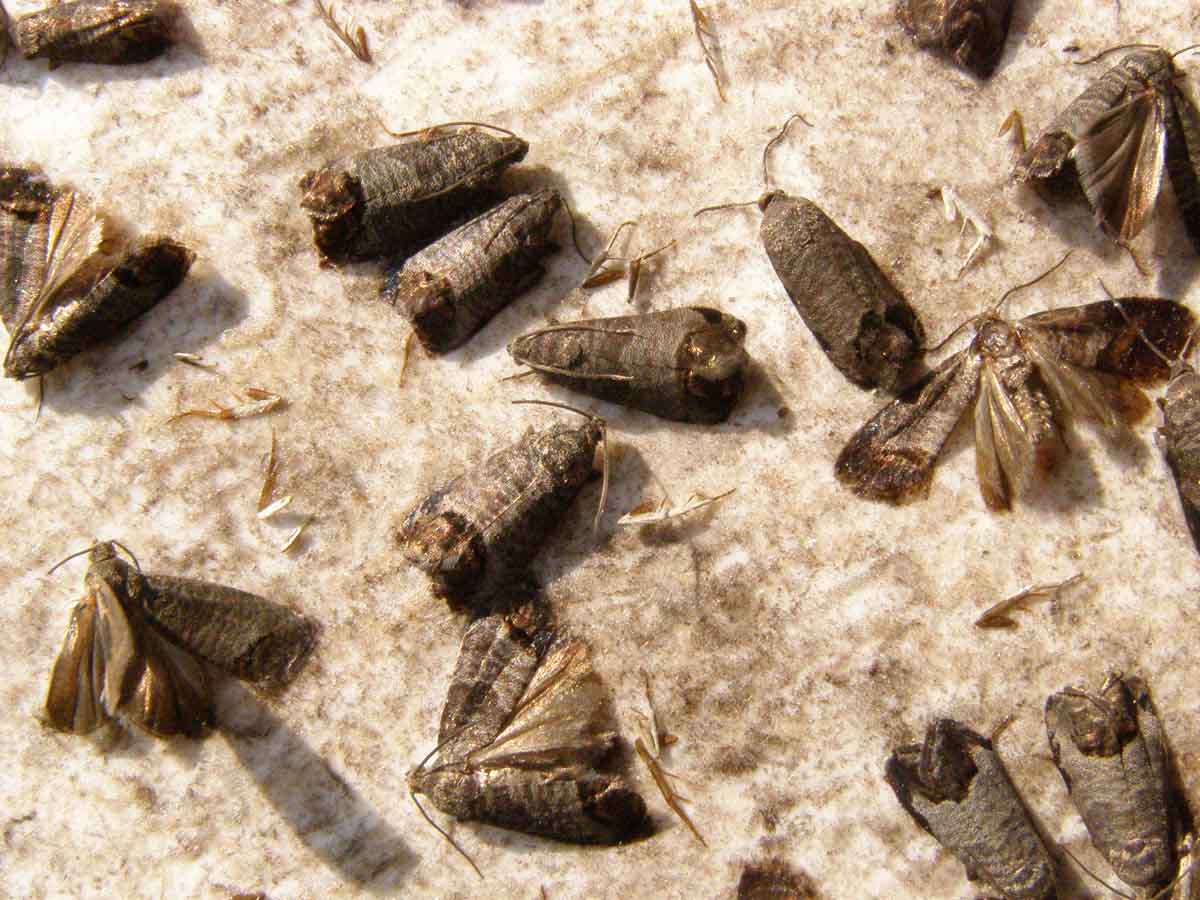Vraťme se podrobněji k některým zmíněným druhům z hlediska ochrany. U obaleče jablečného během června zaznamenáváme významné letové vlny rozhodující o síle druhé generace a o přímých škodách na úrodě. Pečlivě sledujeme úlovky v lapácích a průběh teplotního modelu, nejlépe, máme-li přístup k programu RIMpro. V daném období se v posledních letech setkáváme s kontinuálním kladením, což vyplývá ze splnění teplotních podmínek 16 °C ve večerních hodinách. Kladení obaleče však ustává v době srážek i když teploty mohou být ideální. Možnost výběru přípravků se neustále zužuje a jsme odkázáni pouze na látky působící larvicidně, což vyžaduje provést aplikaci těsně před líhnutím housenek z vajíček, nejlépe na základě odpočtu teplotní sumy (SET10(h) = 1 900 °C) pro embryonální vývoj od významné letové vlny. Z chemických insekticidů je vhodné upřednostnit selektivní přípravky (chlorantraniliprole, indoxacarb, metoxyfenozide, CpGV) před širokospektrálními neonikotiniody, jejichž aplikace je opodstatněná pouze v případě současného výskytů mšic.