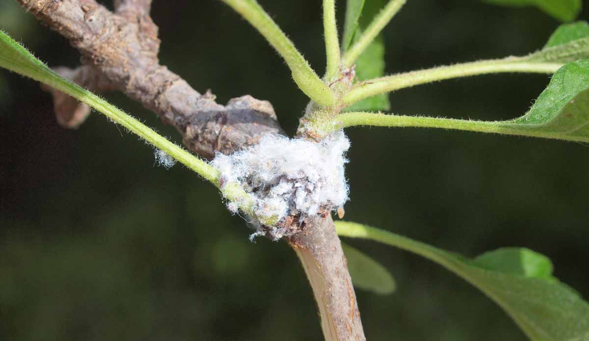 Trochu složitěji musíme řešit vlnatku krvavou, kde je před aphicidním ošetřením třeba odstranit voskové povlaky, nejlépe pomocí draselného kokosového mýdla. Překrývající se generace mery skvrnité je již těžké zvládat přímými zásahy a budeme se muset více spoléhat na přirozené nepřátele a případně i na aplikace podpůrných látek odstraňujících medovici (draselné kokosové mýdlo, hořká sůl).
