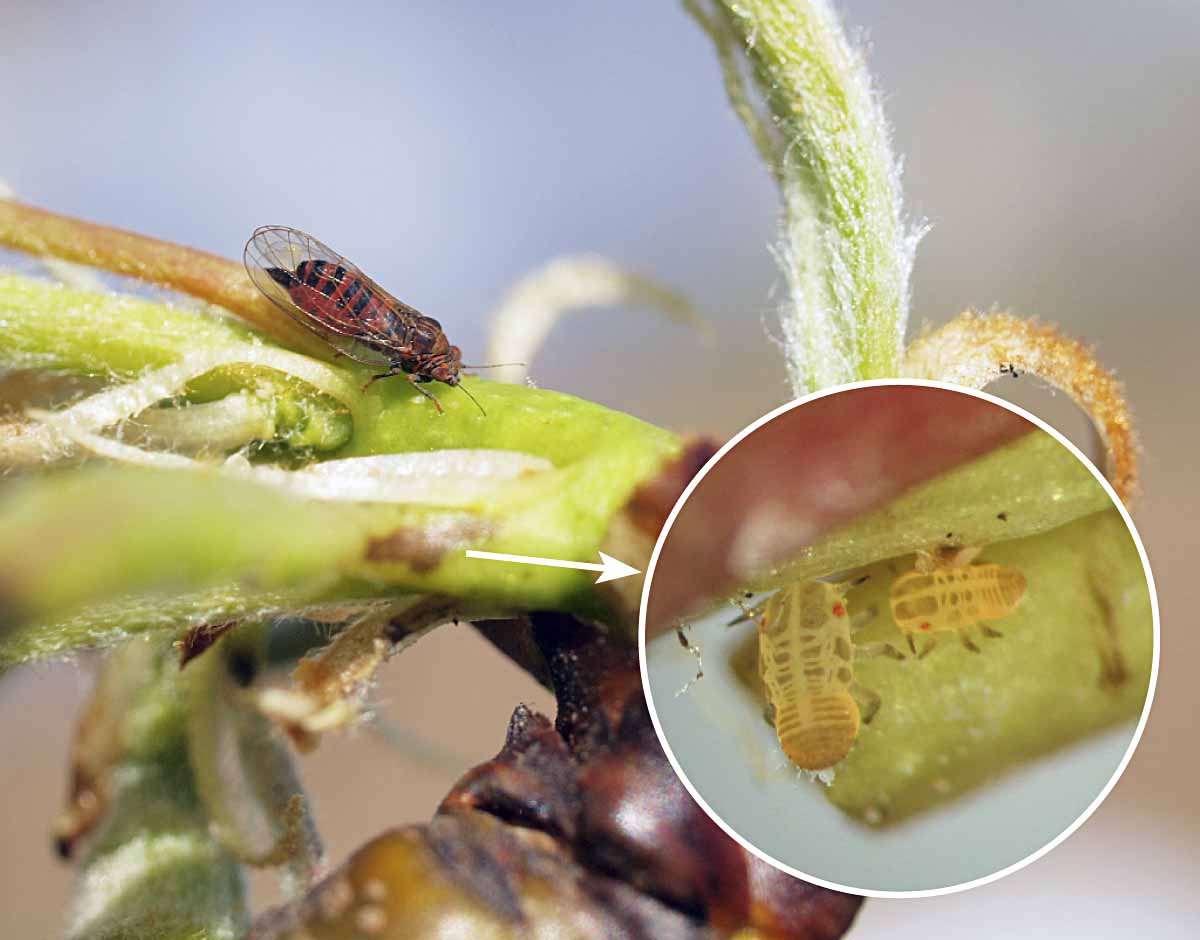 V posledních letech se stále škodlivěji v sadech projevují mšice, což potvrdila i loňská sezona. Základním pravidlem boje proti mšicím je včasnost zásahu, optimálně na líhnoucí se zakladatelky (fundatrix). V dubnu proto nastává klíčové období v ochraně proti mšici jitrocelové (Dysaphis plantagiena). Zakladatelky se začínají líhnou z vajíček přibližně ve fází zeleného poupěte, takže v této době je třeba provádět pravidelné vizuální kontroly pomocí lupy a podle příznaků sání. S určitým předstihem před mšicí jitrocelovou se líhne i mšice Dysaphis devecta působící typické červené puchýřky na listech, což může při signalizaci ošetření pomoci. O něco později začíná být aktivní i mšice jabloňová (Aphis pomi), která sice nepůsobí závažné škody na násadě, ale i tak je dobré tuto mšici sledovat.
