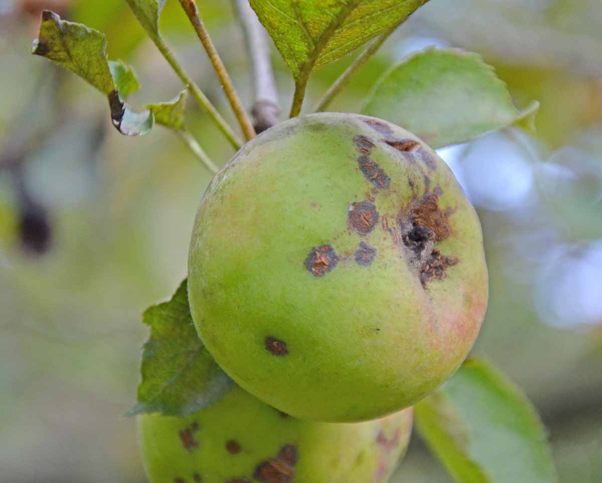 Silnější byly také výskyty mušinovitosti jablek (Schyzothyrium pomi).