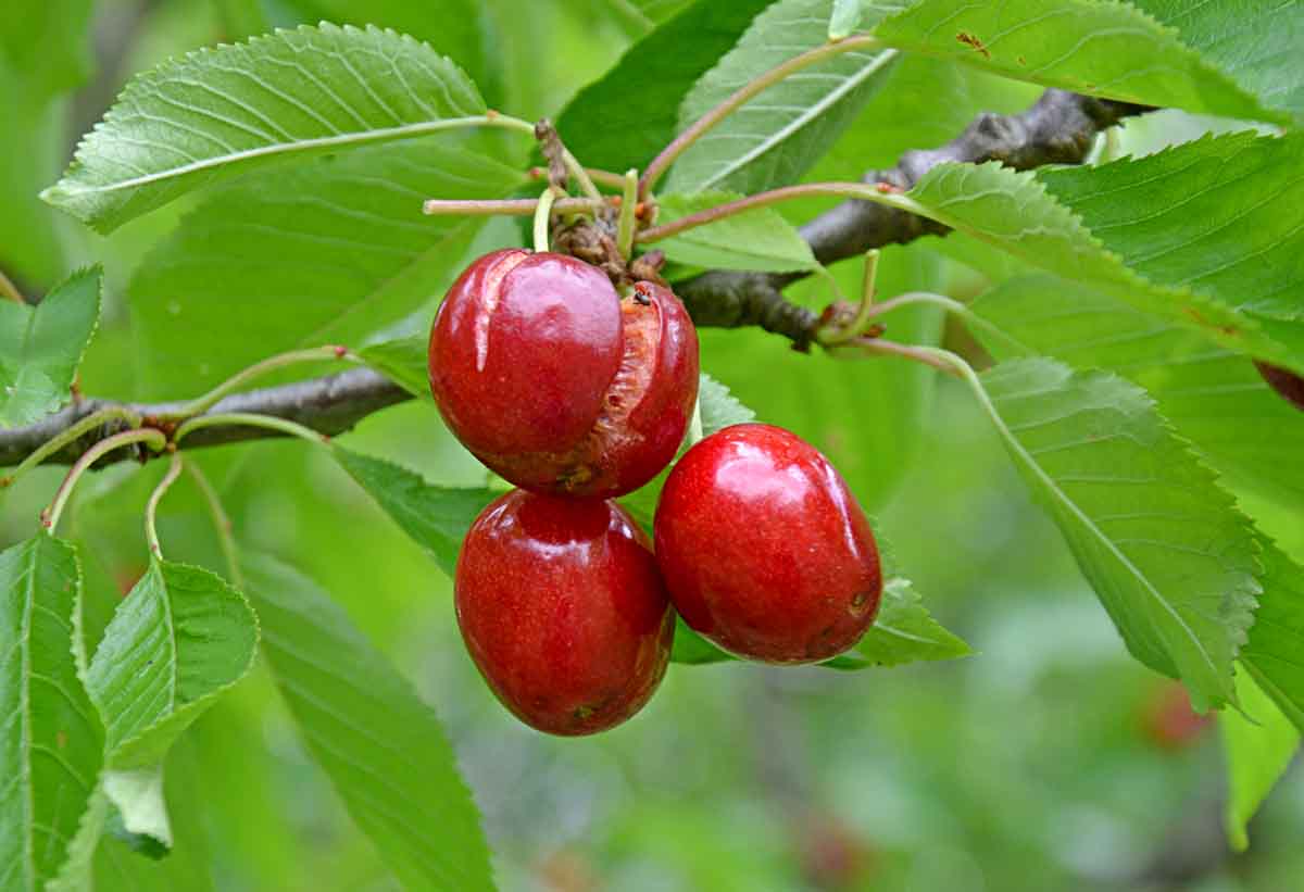 Na lokalitách, kde byly v období zrání a zralosti třešní a višní vydatné dešťové srážky, došlo k silnému poškození plodů vlhkostní praskavostí. Vlhkostní praskavost je způsobena dlouhodobým ovlhčením plodů, kdy voda projde osmózou přes epidermis do dužnaté části plodů, mezokarpu. V důsledku příjmu vody se buňky dužniny rychle zvětšují, což vede k napětí epidermis. Pokud toto napětí přesáhne limit pružnosti epidermis, plody praskají. Poškozené plody byly následně napadeny houbami rodu Monilinia a rychle hnily.