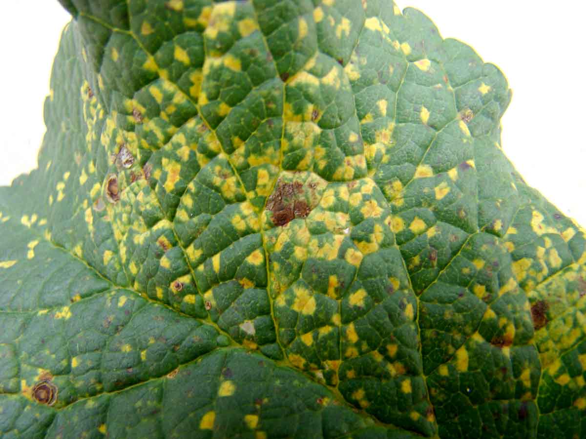 Rzivost slivoně - drobné hranaté žluté skvrny na líci listů