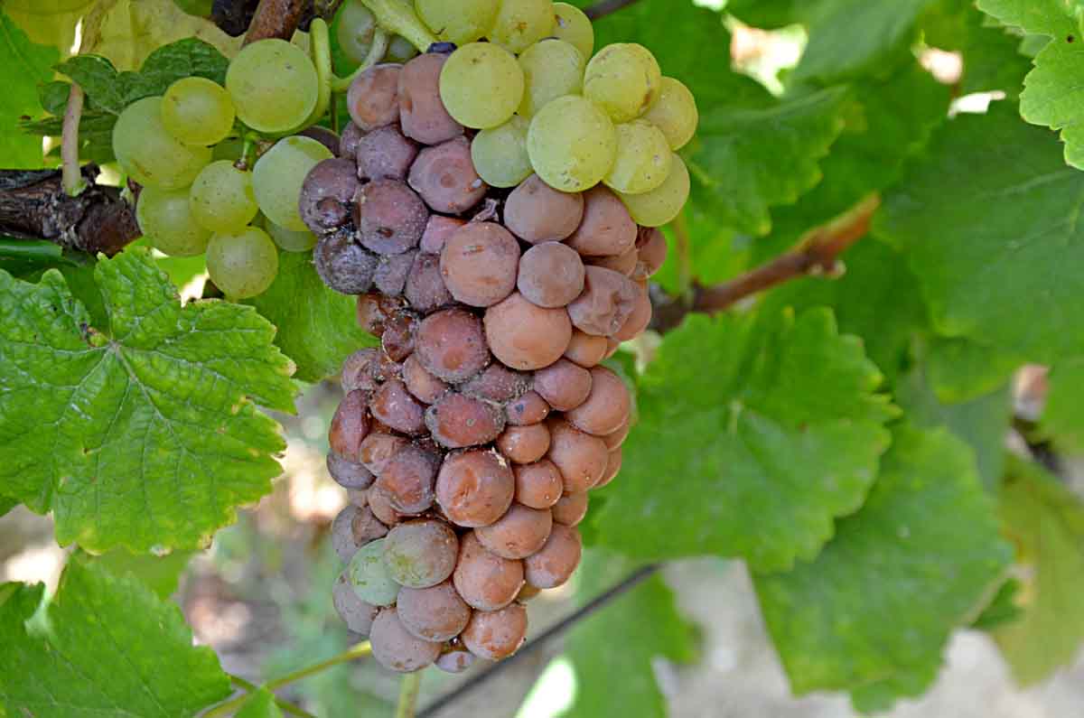 Lokálně byly zaznamenány silnější především pozdní výskyty šedé hniloby hroznů révy (Botrytis cinerea). Proti šedé hnilobě hroznů se zpravidla ošetřuje v období dokvétání a ve fázi zapojování hroznů a od počátku zrání. Ve fázi dokvétání a krátce po odkvětu (druhá polovina června) byly vydatné a opakované deště, které vytvořily vhodné podmínky pro sporulaci a následné osídlení zbytků květenství patogenem. Patogen může na osídlených zbytcích květenství uvnitř hroznů přetrvat až do počátku zrání, kdy nastupuje období vysoké vnímavosti hroznů k infekci. Obdobná situace byla i ve fázi zapojování hroznů (2. a 3. týden července). V obou termínech bylo zapotřebí ošetřit porosty náchylných odrůd s hustým hroznem (např. Aurelius, Neuburské, Svatovavřinecké) i proti šedé hnilobě. K ošetření se používají především přípravky proti plísni révy nebo padlí révy se současnou nebo vedlejší účinností na šedou hnilobu (folpet, kombinace s folpetem, strobiluriny aj.) Základní ošetření se provádí ve fázi počátku zrání, kdy začíná období vysoké citlivosti hroznů k napadení. V loňském roce tato fáze nastupovala velmi rozdílně podle odrůd i lokalit. Tuto skutečnost, a především lokální dešťové srážky, bylo zapotřebí zohlednit při stanovení termínu ošetření. K šíření šedé hniloby v průběhu srpna docházelo jen lokálně u náchylných raných odrůd. Vzhledem k průběhu počasí bylo zapotřebí ošetření opakovat. Vhodné podmínky pro patogen nastaly v 1. týdnu září, kdy byly vydatné a opakované dešťové srážky. Další šíření choroby omezilo velmi teplé počasí bez dešťových srážek. Situace se opět změnila od 4. týdne září, kdy se ochladilo a byly vydatné deště. V tomto období a v dalším průběhu zrání došlo lokálně i k významnému napadení náchylných odrůd.