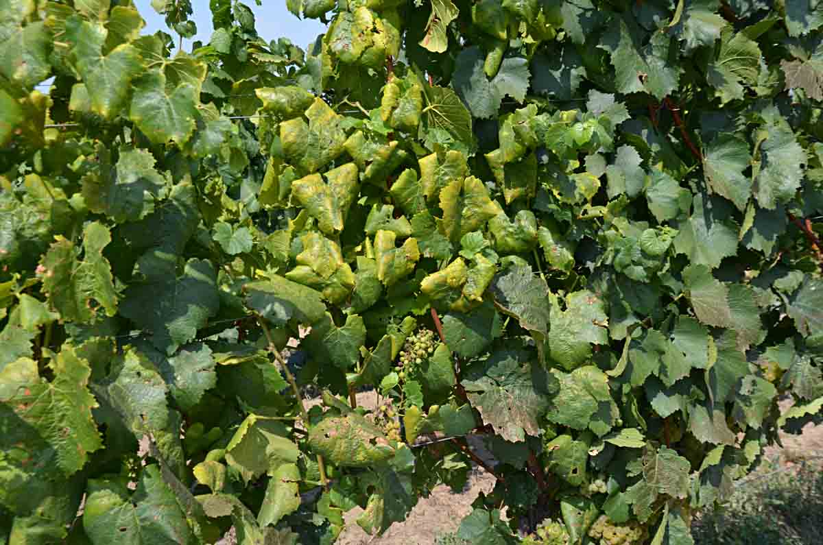 Na rizikových lokalitách (pozemky s vysokým obsahem uhličitanu vápenatého, resp. aktivního vápníku) byly velmi časné a lokálně i silné výskyty Fe-deficientní vrcholové chlorózy révy. Výskyt podpořily nedostatek vláhy v dubnu i chladné a deštivé počasí v květnu a deštivé počasí v červnu. Při výskytu je třeba optimalizovat péči o půdu, především obohatit půdu o organickou hmotu, aby byla podpořena biologická aktivita půdy, zlepšena půdní struktura i vodní a vzdušný režim a následně uvolňování a příjem živin. Na rizikových lokalitách volit tolerantní podnože (Craciunel 2, SO4, Teleki 5C) a na mimořádně rizikových stanovištích podnož Fercal. Aktuálně je možno postižené porosty opakovaně ošetřit listovými hnojivy se zvýšeným obsahem železa, nejlépe v chelátové vazbě.