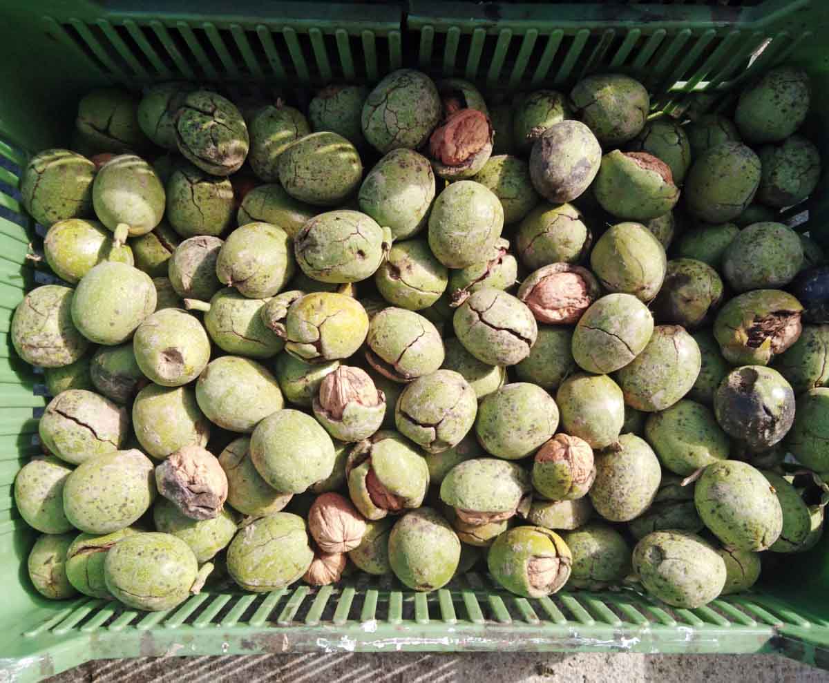 Napadnuté orechy vrtivkou orechovou