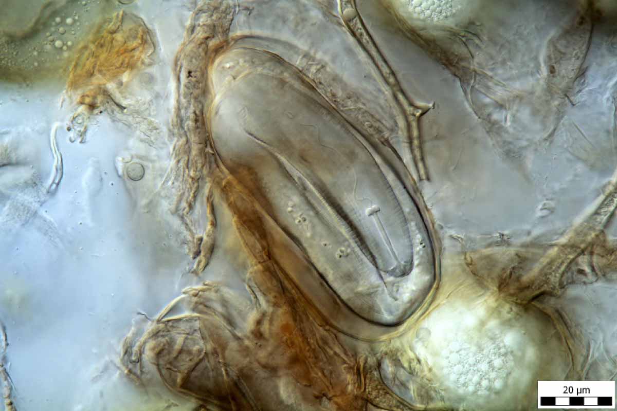 Embryon parazitovaný houbou v cystě