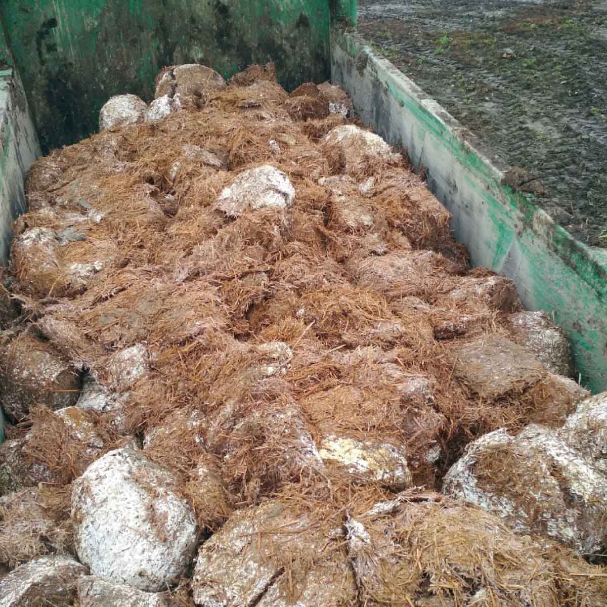 Inokulum - balíky slámy prorostlými myceliem hlívy ústřičné