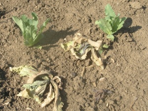 Obr. 5: Úhyn rostlin vlivem žíru larev krytonosce kořenového
