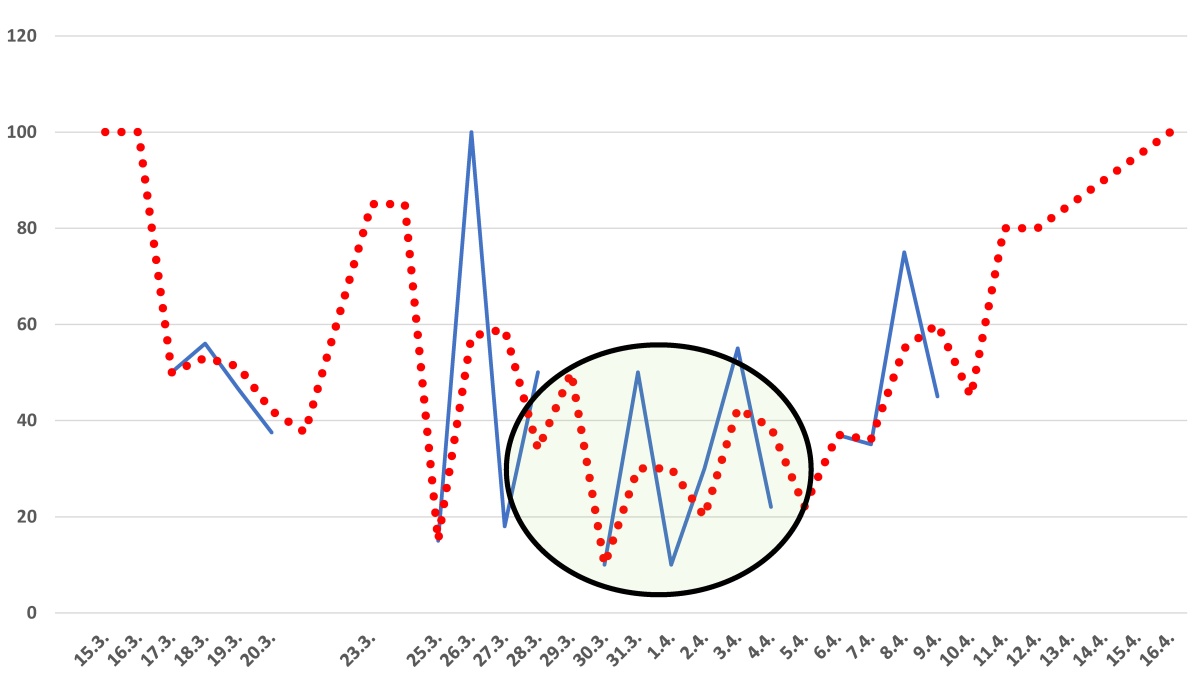 Analýzou dat bylo zjištěno, že poškození závisí na termínu ošetření (viz graf). Na pozemcích s předčasnými termíny aplikace (před 25. březnem) a pozdními aplikacemi (po 5. dubnu, vyšší polohy po 9. dubnu) bylo monitorováno napadení stonků u více než 50 % rostlin. Druhým nejvýznamnějším faktorem byla intenzita napadení řepky dospělci stonkových krytonosců.