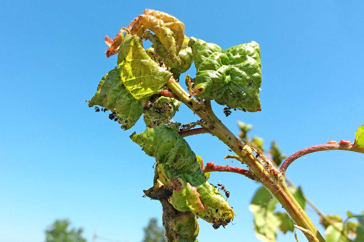 Deformace listů mšicí broskvoňovou