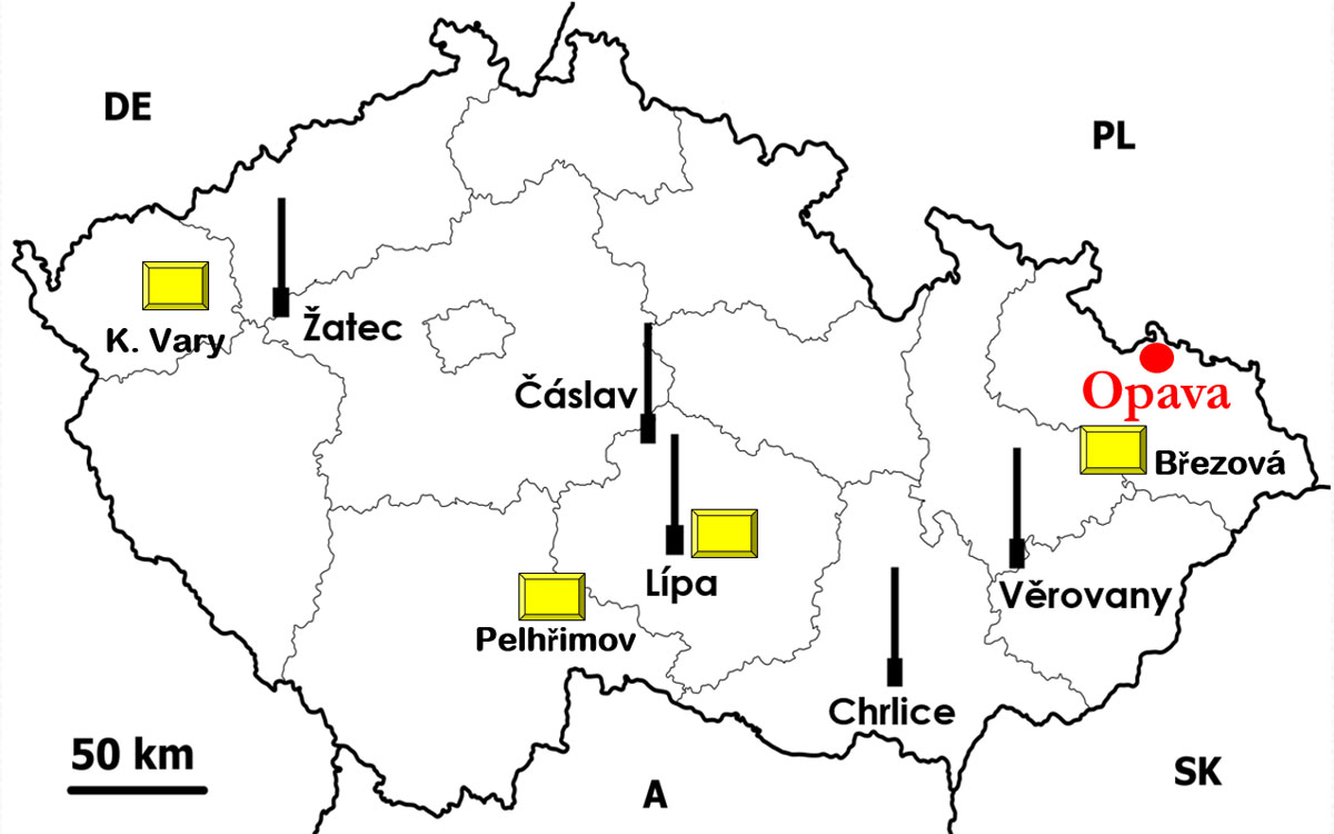 Rozložení sacích pastí a Lambersových misek