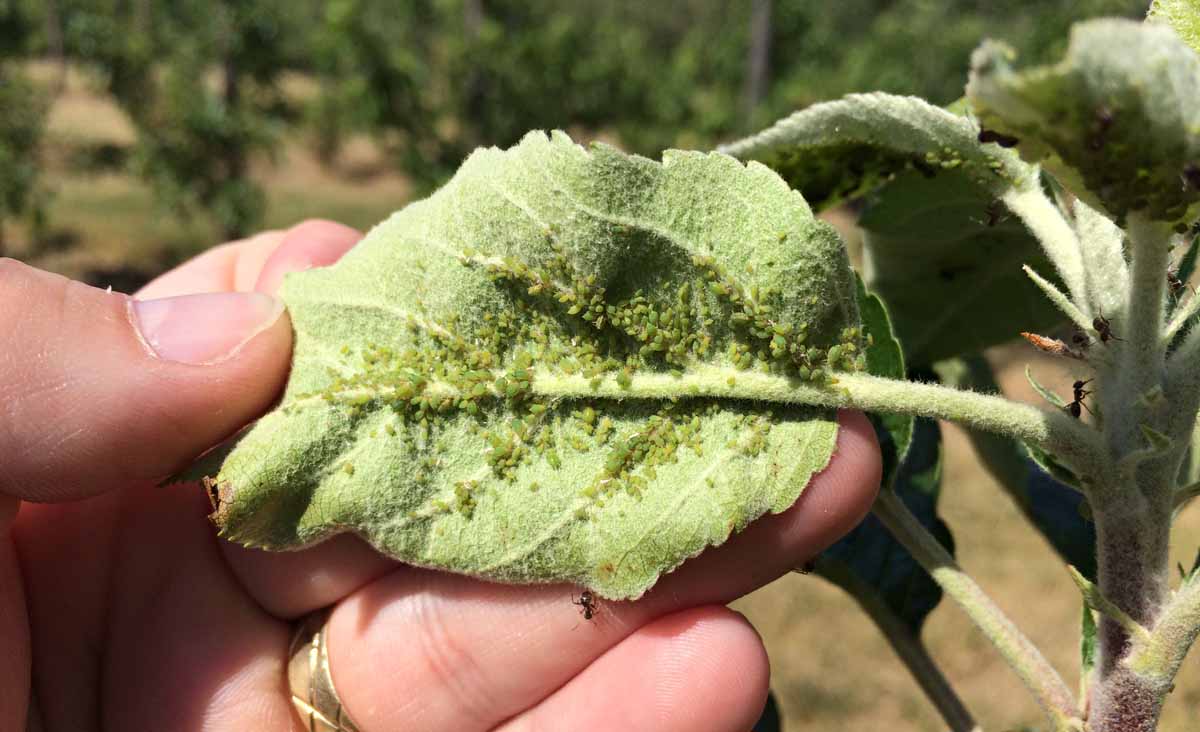 Silný jarní výskyt mšice jabloňové (Aphis pomi) dělal starosti mnoha sadařům