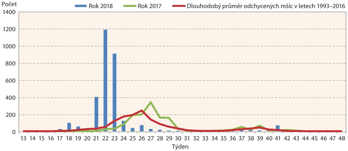 Prognóza pro rok 2018 předpokládala silné jarní přelety mšice švestkové, také nadprůměrnou migraci mšice střemchové, kyjatky osenní a mšice makové. Dále uváděla průměrnou migraci mšic rodu Dysaphis a podprůměrný přelet pro mšici slívovou, mšice rodu Aphis, mšici zelnou, kyjatku travní a mšici řešetlákovou.