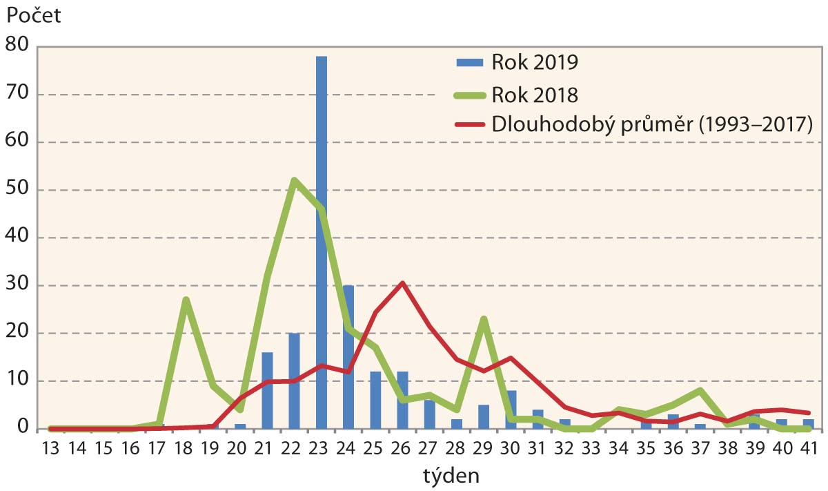 Graf 5: Letová aktivita mšice chmelové (Phorodon humuli) v ČR