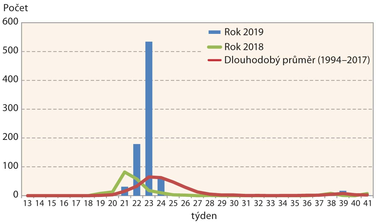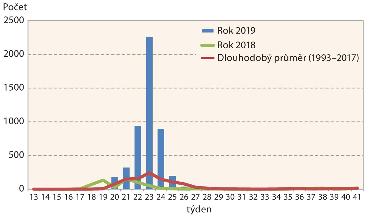 Graf 2: Letová aktivita mšice řešetlákové (Aphis nasturtii) v ČR