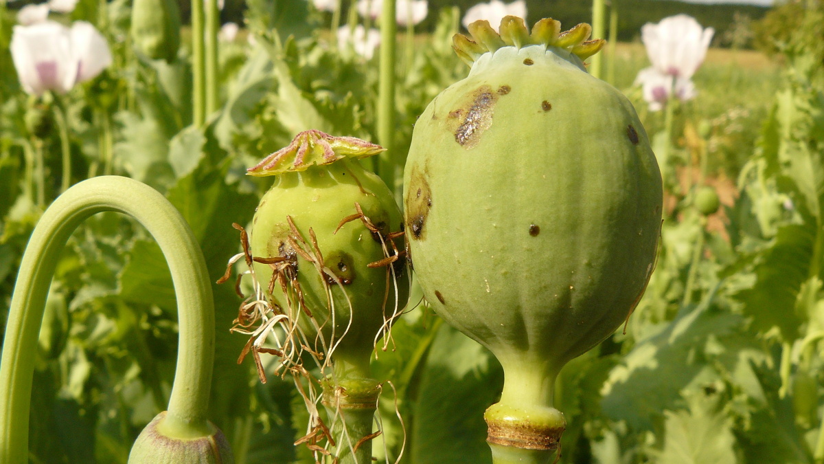 Obr. 3: Poškozené makovice v porostu