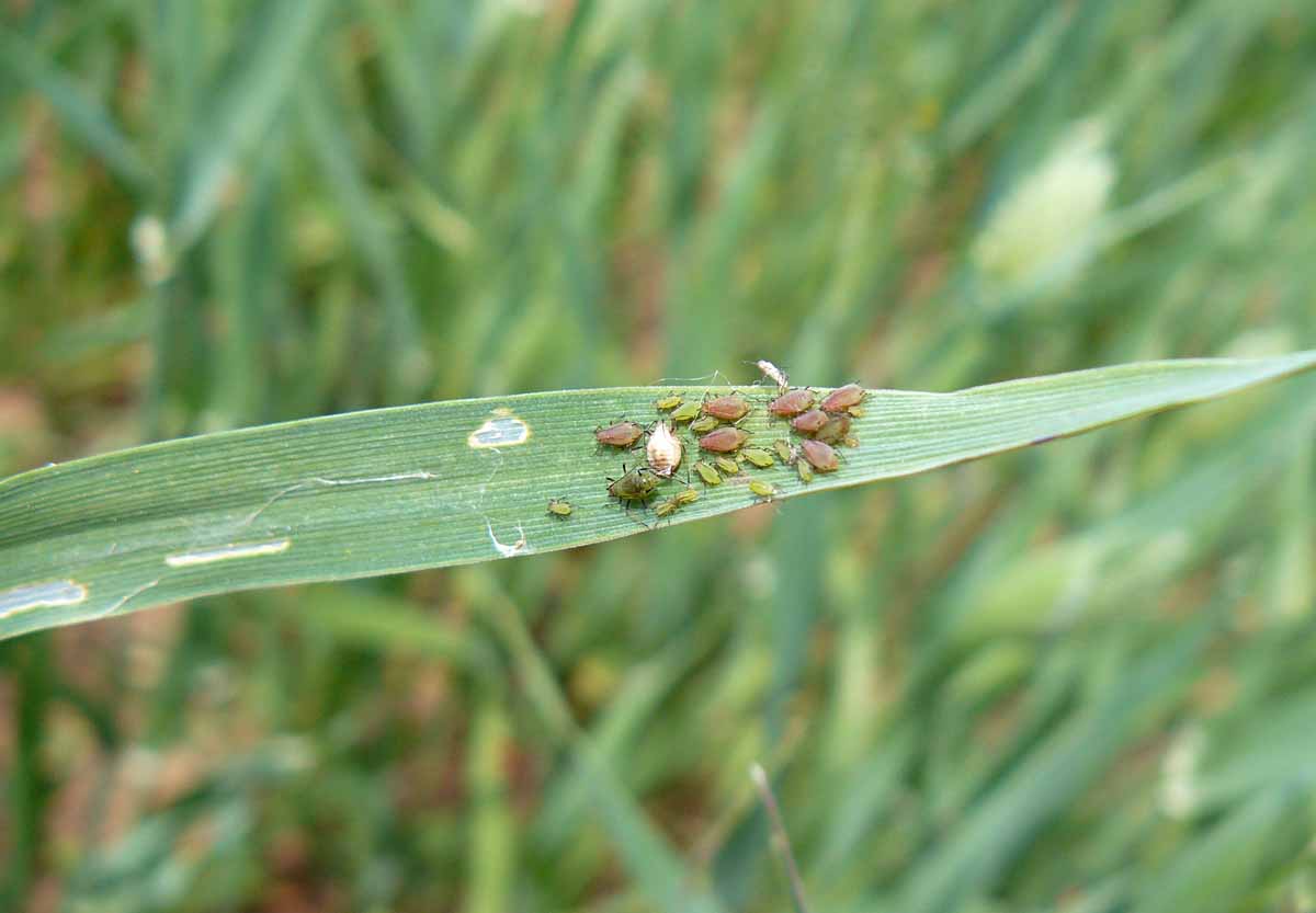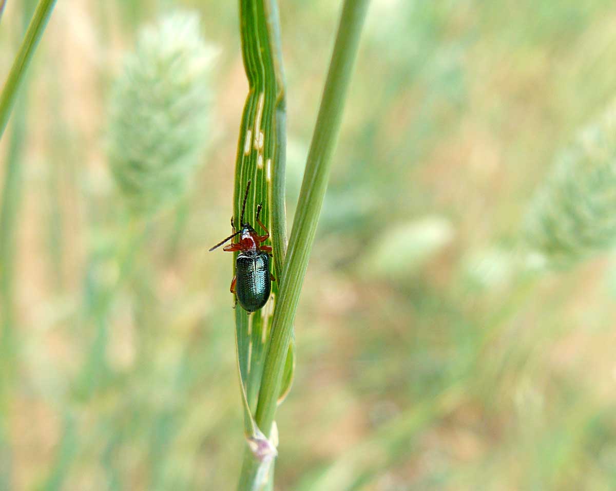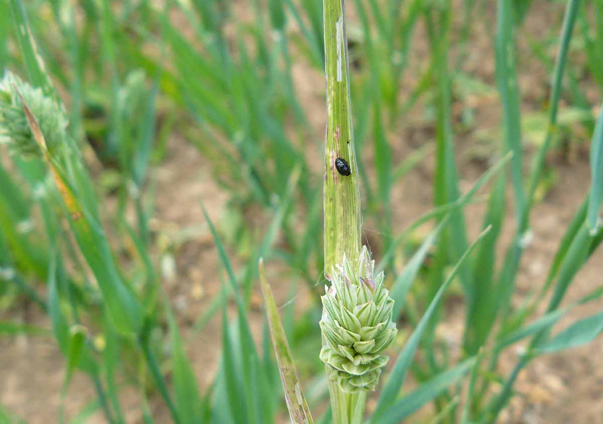Důležité je sledovat tuto plodinu především v oblasti minimalizace ztrát vyskytujícími se plevely a dále pak hmyzími škůdci. Z herbicidů lze nově použít přípravek Mustang, u kterého došlo k rozšíření jeho registrace i do této minoritní plodiny. Na základě monitoringu v maloparcelových polních pokusech se mezi hlavní vyskytující se hmyzí škůdce řadí kohoutek modrý (Oulema galleciana) a kohoutek černý (Oulema melanopus) (obr. 1), a také několik druhů mšic - kyjatka osenní (Sitobion avenae), mšice střemchová (Rhopalosiphum padi) a kyjatka travní (Metopolophium dirhodum).