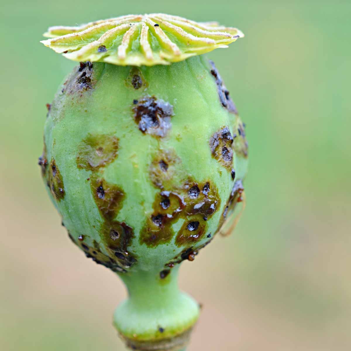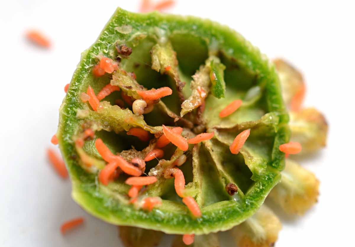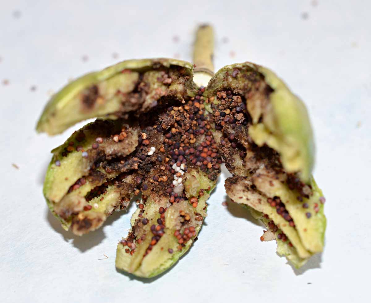Obr. 3: Poškozená makovice s larvami krytonosce makovicového