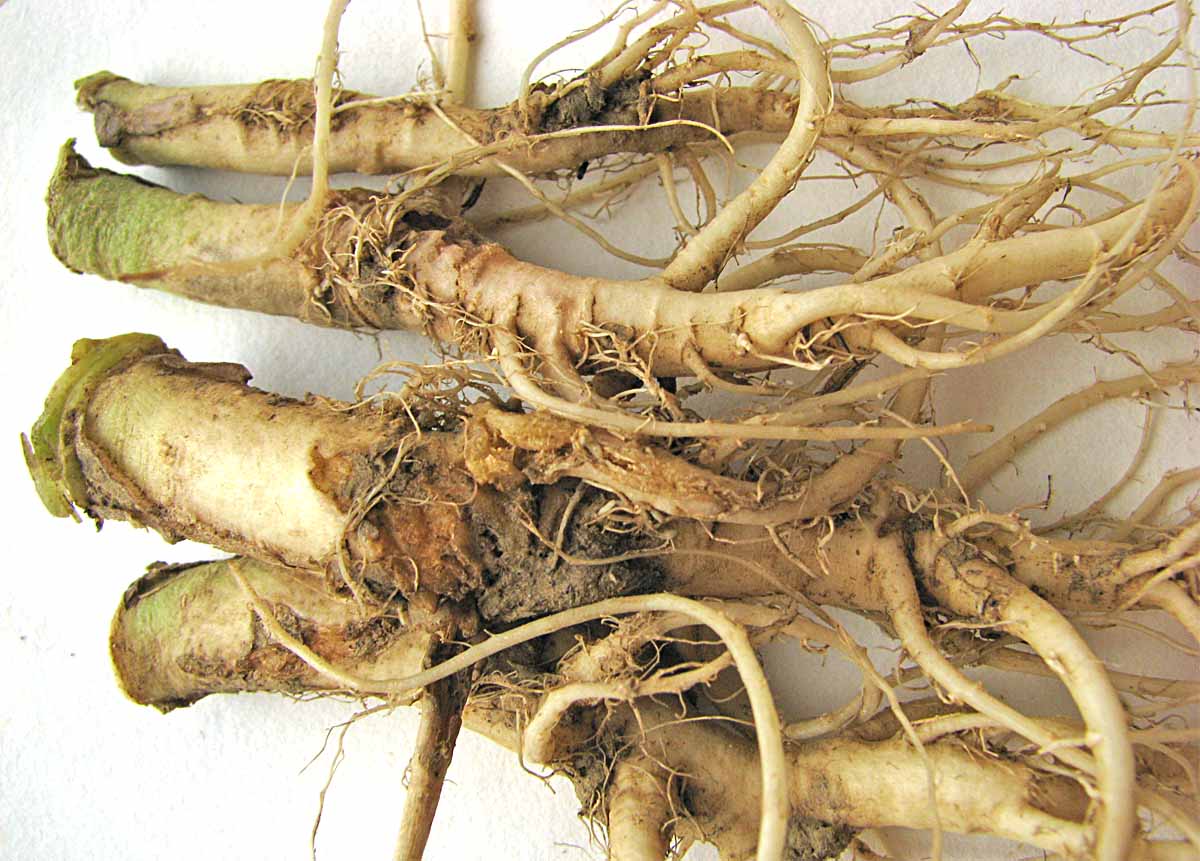 Obr. 2: Korene repky ozimnej poškodené larvami kvetárky kapustovej