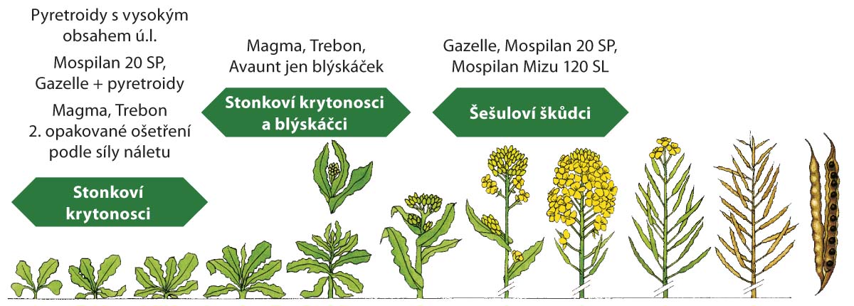 Ozimá řepka je od obnovení vegetace na přelomu února a března až do období zrání koncem června významně poškozována několika škůdci. Pamětníci si určitě ještě vzpomenou na dobu, kdy stačilo jedním insekticidním postřikem eliminovat nálet blýskáčka a úroda byla zachráněna.