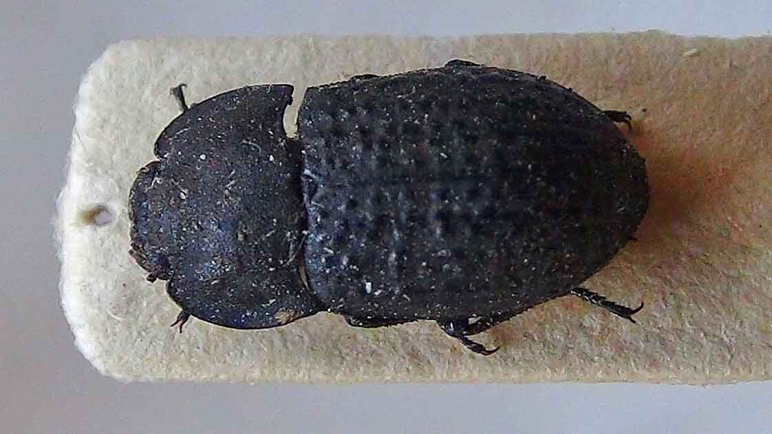 Tento brouk je 7–10 mm velký, zbarvení je černo-šedé, ale krovky jsou často pokryté částečky písku a hlíny. Štít a hlava ploché pokryté drobnými hrbolky. Krovky jsou oválné s šesti žebry, a také pokryté drobnými hrbolky. Na předních holeních trnovitý výběžek.