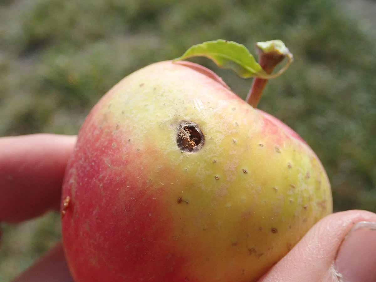 Takto hluboký požerek na plodu zřejmě způsobila housenka některého ze zástupců můr