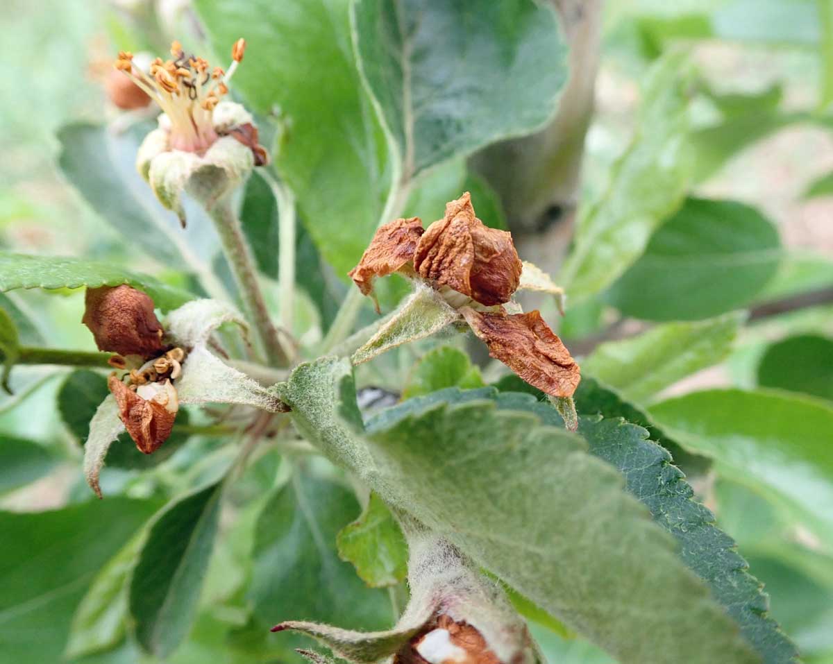 V některých sadech se začíná více objevovat květopas jabloňový - poškozené květy