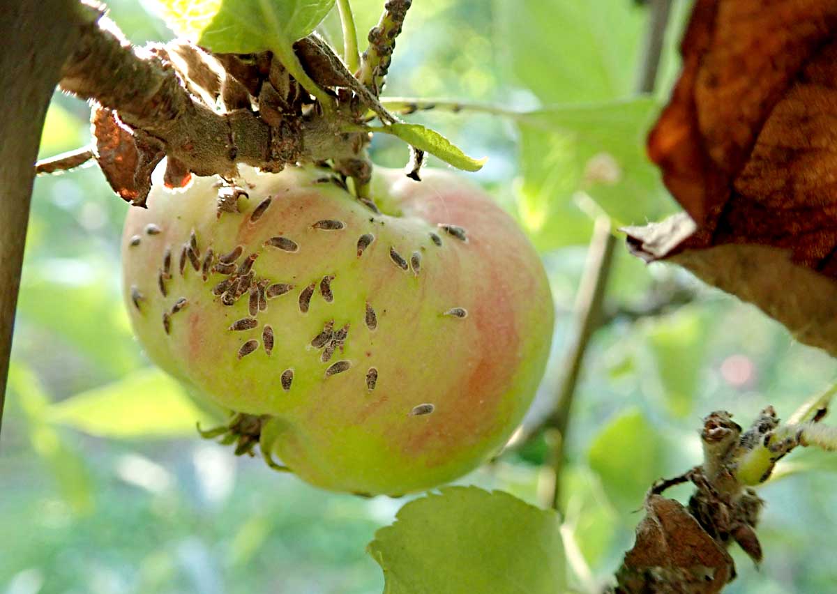 V předstihu bychom se měli zabývat i mšicemi, které si letos v sadech opravdu přišly na své a zbavit se jich během vegetace stálo hodně úsilí. Jako modelový příklad uveďme mšici jitrocelovou (Dysaphis plantaginea), kterou můžeme považovat za jeden z hospodářsky nejvýznamnějších druhů. Pokud jsme ošetřovali již v době zeleného, nejpozději růžového poupěte proti zakladatelkám líhnoucím se z diapauzních vajíček, problém byl z větší části vyřešen. Velice dobře a dlouhodobě tímto způsobem funguje botanický insekticid na bázi azadirachtinu. I když se ve výběru chemických aficidů objevily nové účinné látky, jako např. flonicamid, spirotetramat a imidacloprid, k úspěchu vede hlavně zmíněná časnost zásahu, jež platí i u všech dalších druhů mšic. Základem je proto pravidelný monitoring, abychom ošetření provedli dříve, než jsou stromy mšicemi obalené. Nezastupitelnou roli v ochraně proti mšicím hrají přirození nepřátelé, hlavně slunéčka, v jejichž populacích v poslední době převažuje slunéčko východní (Harmonia axyridis) schopné kolonie mšic sežrat během pár týdnů.