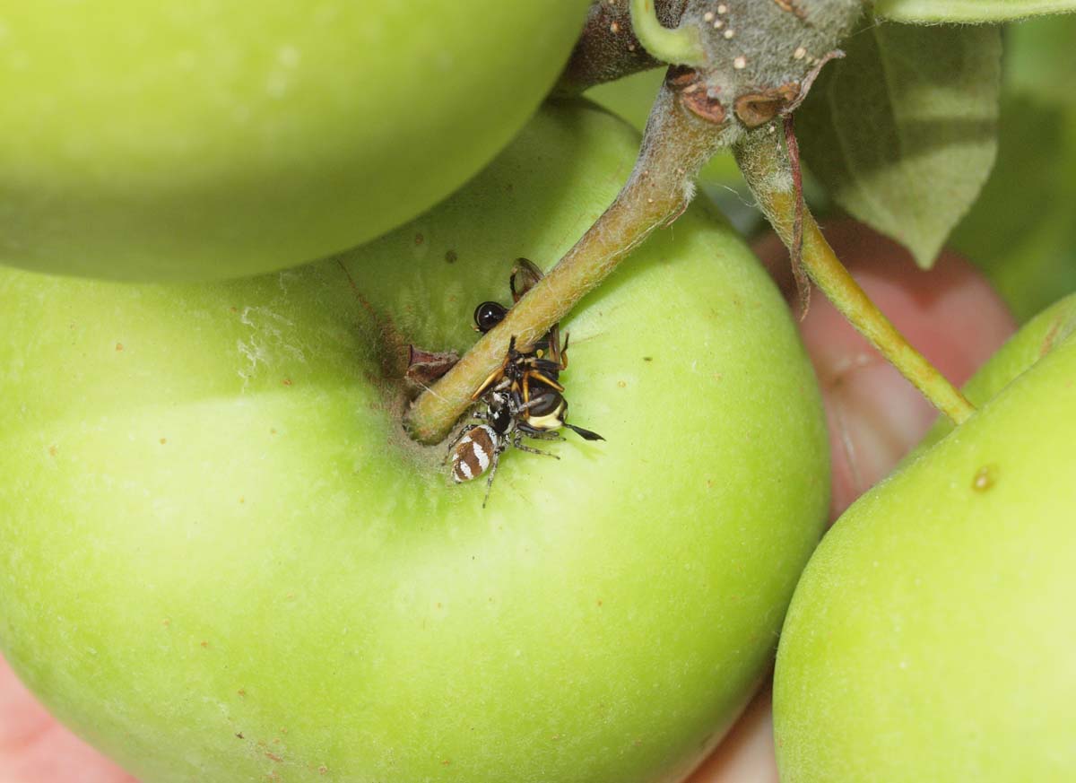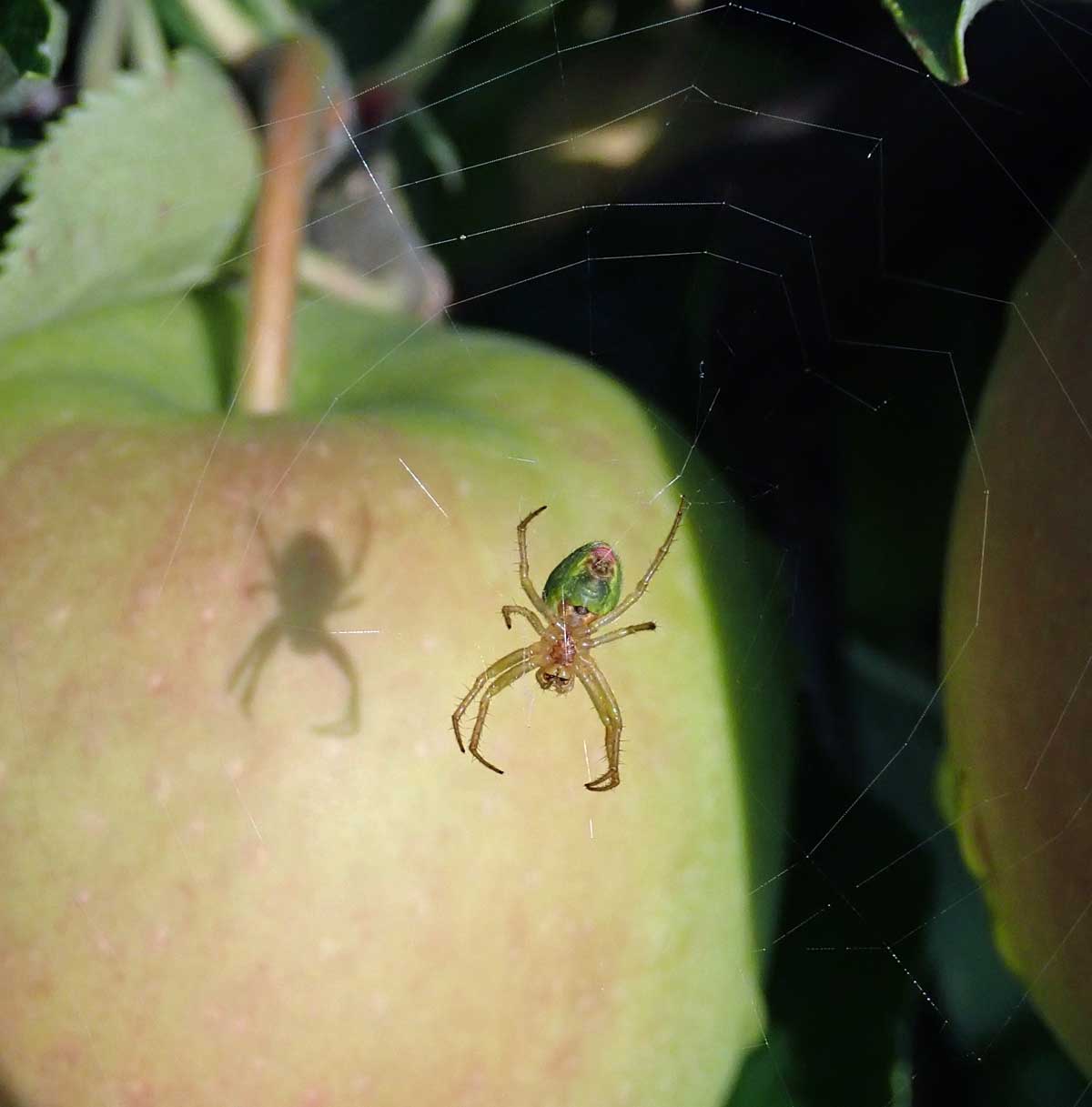 Běžnými zástupci užitečných bezobratlých v sadech jsou i pavouci - křižák zelený