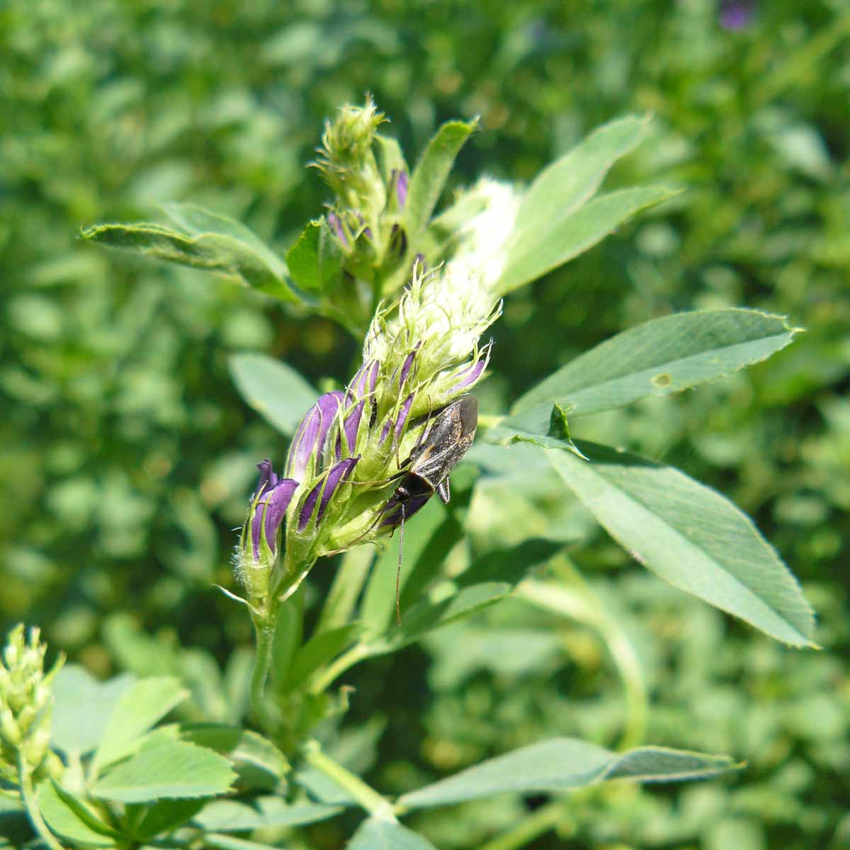 Pokud používáme tzv. živné pásy pro rozmnožení samotářské včely Rhophitoides canus - šedosrstka tolicová, které se ponechávají z první seče, je velmi vhodné provést insekticidní ošetření těchto pásů před květem, tj. přibližně koncem května. Zabráníme tím namnožení škůdců vojtěšky, kteří vytváří dvě a více generací za rok.