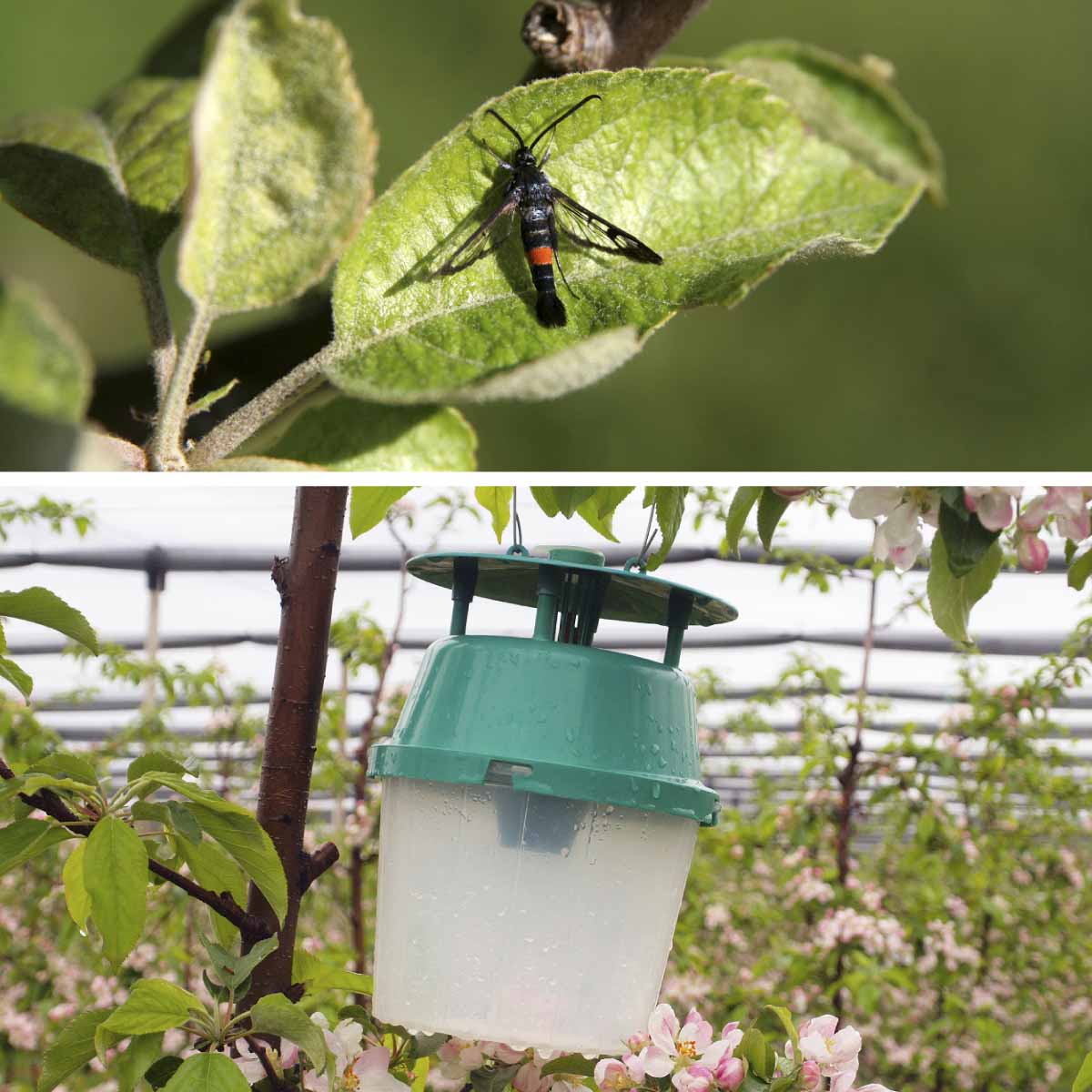 Možnosti ochrany proti nesytce jabloňové jsou omezené - jednou z alternativ je odchyt dospělců do nádobových lapáků, kde je zkombinován feromon s potravní návnadou