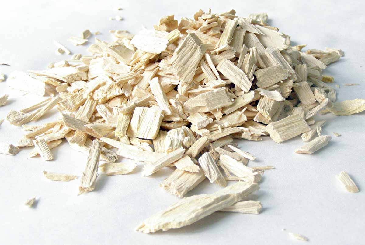 Drť z tropické dřeviny Quassia amara, z níž se připravuje výluh s insekticidními účinky