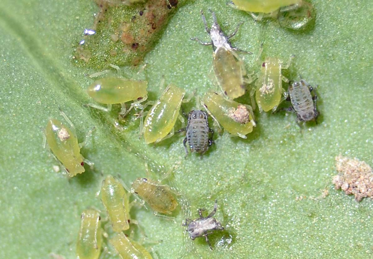 Společný výskyt mšice zelné a broskvoňové