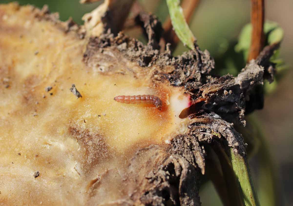 Přezimuje kukla v půdě, méně často housenka posledního instaru. První dospělci se začínají líhnout koncem dubna, ale letos to bude později. Housenky 1. generace mohou poškodit žírem mladé rostliny (zpomalení růstu až úhyn), ale s tímto příznakem jsem se dosud na poli nesetkal, což může souviset s mořením osiva. Housenky dalších generací jsou nejčastěji v srdéčku. Nejvyšší škodlivost je zpravidla v srpnu a září za sucha, kdy řepa neroste, a housenky mohou zničit celé srdéčko. Následně vlivem růstu nových listů klesá výnos i cukernatost. V době sklizně se na poli nacházejí všechna vývojová stadia, ale do jara přežijí pouze kukly a housenky posledního, výjimečně i předposledního instaru.