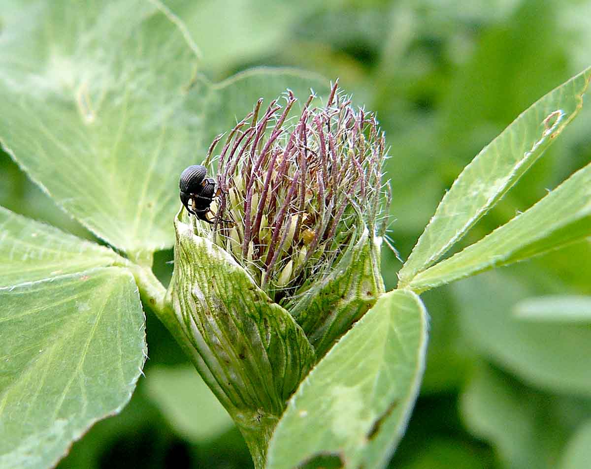 U semenných porostů jetele lučního musíme pro minimalizaci výnosových ztrát sledovat zastoupení hmyzích škůdců v porostu, a to především nosatčíka jetelového (Apion trifolii) a nosatčíka obecného (Protapion apricans).