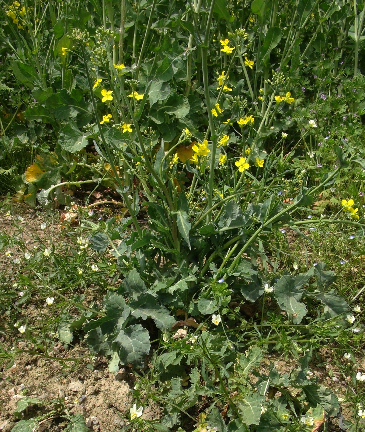 Zdeformovaná rostlina v době květu po silném žíru larev dřepčíka olejkového