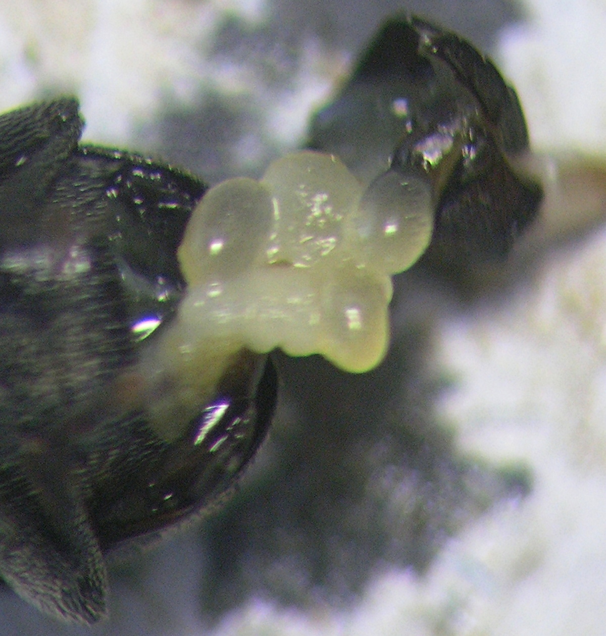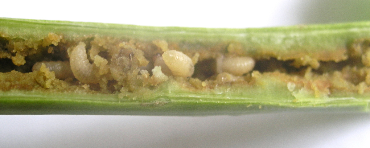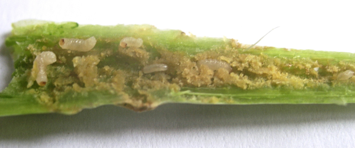 Obr. 3: Larvy krytonosce řepkového ve stonku řepky