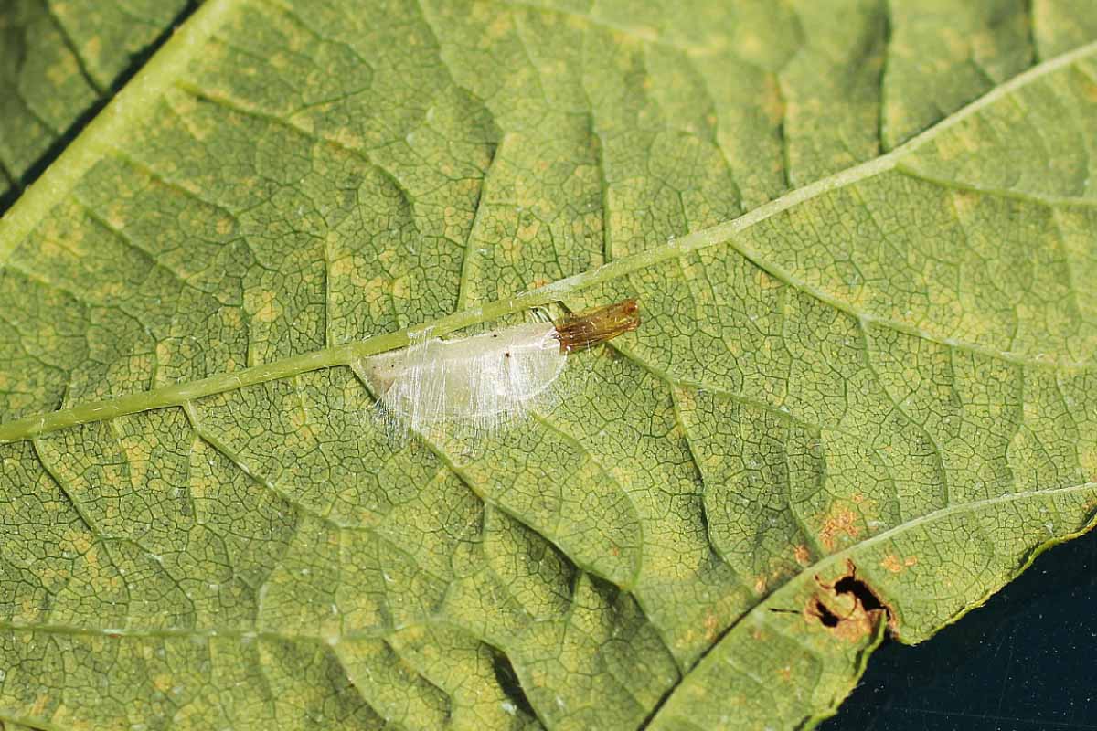 Kokon lumčíka ve stočeném listu